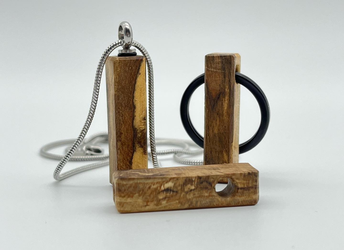 Edelstahl-Ascheanhänger aus dem hauseigenen Sortiment, auch mit Fell befüllbar